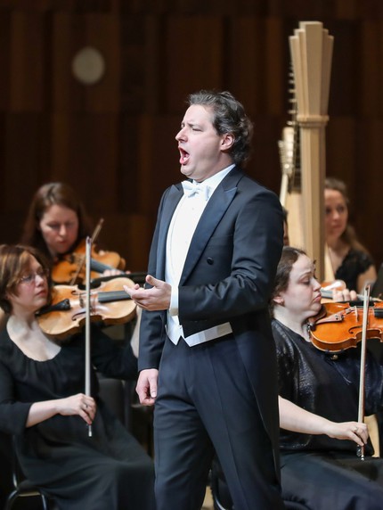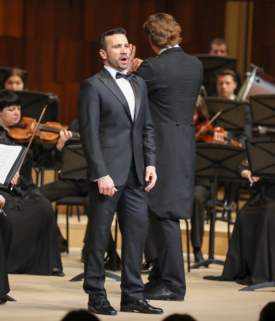 Тем не менее, почти под занавес первого отделения вечера, состоявшегося 26 февраля в Зале «Зарядье» под аккомпанемент Московского камерного оркестра «Musica Viva», дирижером которого в этом отделении выступил Константин Чудовский, юбиляр спел-таки единственный сольный номер Россини! Им стала ария Арнольда «Asile héréditaire» из «Вильгельма Телля», вернее начальный раздел этой арии (ее медленная часть).
