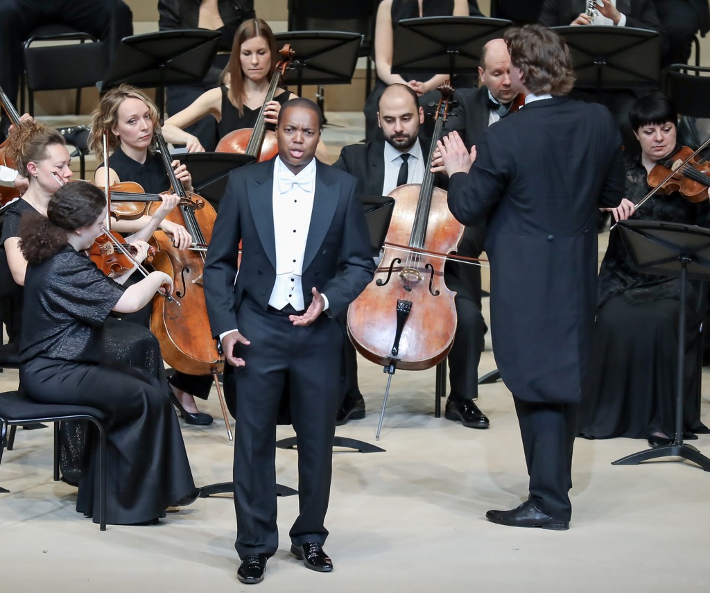 Гламурный привет из Пезаро – довольно сомнительный и настораживающий – в двух виртуозных ариях Россини, спетых вполне зачетно, но – создалось ощущение – вокальным автоматом без чувств и эмоций, лишь номинально передал молодой лирический тенор из Южной Африки Леви Секгэпэйн, дебютант фестиваля прошлого года.