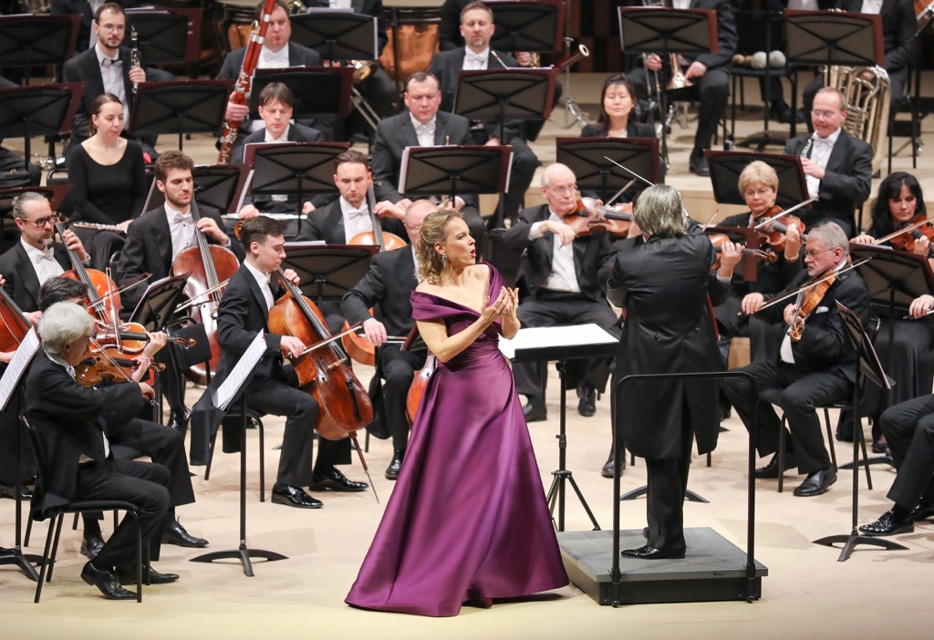Словно на «паритетных началах» услышали мы и три вокальных фрагмента – песню о фате и арию Эболи («Nei giardin del bello» и «O don fatale, o don crudel») из оперы Верди «Дон Карлос», а также арию Адриенны Лекуврер «Io son l’umile ancella» из одноименной оперы Чилéа. Два «убойных» для меломанов номера Эболи сразу же воскресили в памяти весьма яркие виртуальные впечатления от кинотрансляции постановки этой оперы с участием певицы в оригинальной французской редакции, и речь идет о поистине монументальной продукции Парижской национальной оперы сезона 2017/2018.