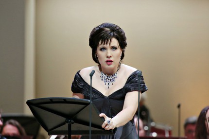 Концертная конструкция финальной сцены Елизаветы «E Sara in questi orribili momenti … Vivi, ingrato, a lei d’accanto … Quel sangue versato al cielo s’innalza» из «Роберто Деверо», из которой между второй и третьей частями «лишнего» объективно исключено даже больше, чем из финала «Марии Стюарт», никаких вопросов не вызывает: «всё главное для пения» в ней сохранено. То же – и в конструкции финала Анны «Piangete voi? Donde tal pianto? … Al dolce guidami castel natio … Coppia iniqua, l’estrema vendetta» из «Анны Болейн». Вопросы вызывают лишь напористо-зычный, неровный, интонационно открытый стиль «холодной», пронзительно резкой вокализации: то, что мы услышали в Москве в Концертном зале имени Чайковского, со стилем бельканто имело мало общего…