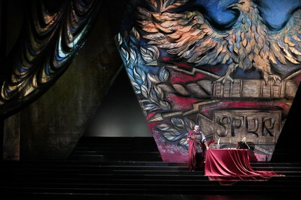 Эту оперу надо, прежде всего, спеть, и она могла бы быть вполне самодостаточной даже в концертном варианте, но когда мы говорим о музыкальном театре, то подход к ее постановке непременно должен быть таким, чтобы этот оперно-музейный артефакт именно таковым и оставался. Всевозможные актуализации с шинелями и касками, с бункерами и танками, с политическими аллюзиями наших дней и «прикольностью» сценографического конструктивизма всегда будут идти вразрез с музыкой, если не убивать ее на корню. Но статуарная эпичность нынешней постановки, воссоздающая инконографически привычную живописно-декоративную среду раннесредневекового сюжета о противоборстве Западного Рима и гуннов во главе с Аттилой, задачам музыки поразительно адекватна!