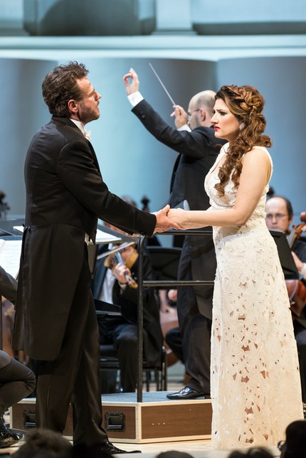 В партии Водяного выступил бас Денис Макаров, певший во втором премьерном составе, так что с Динарой Алиевой в этой опере на публике он впервые встретился лишь сейчас (прошло всего лишь четыре показа той постановки, так что перемешаться составы еще не успели). А главной изюминкой нынешнего концертного исполнения стало то, что в классической чешской опере приняла участие пара словацких исполнителей: в партии Принца выступил тенор Петер Бергер, а в партии Иноземной княжны – сопрано Йолана Фогашова. Однако заметим, что Динару Алиеву, нашу московскую Русалку, Петер Бергер впервые «поймал» в мае 2016 года в «китайских водах» Пекина. Речь идет о постановке известного режиссера из Аргентины Хуго де Ана в Национальном центре исполнительских искусств (NCPA), в которой Иноземной княжной также была Йолана Фогашова, и поэтому приглашение Динарой Алиевой словацких коллег на свой Фестиваль в Москву отнюдь не случайно, а исключительно закономерно!