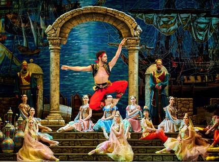 Нуриевский фестиваль открылся обновлённым балетом «Корсар» в постановке М. Петипа в версии К. Сергеева (режиссёрская концепция В. Яковлева). В течение двух вечеров два великолепных состава исполнителей сражались не только за любовь красавицы Медоры и покровительство паши, но и за благосклонность зрителей. В партии Медоры тонкая, как звенящая струна, прима-балерина татарского театра Кристина Андреева демонстрировала графическую отточенность поз, движений, а миниатюрная и юркая солистка Кремлёвского балета Екатерина Первушина пленяла своей мягкой пластикой и тройными смерчевыми оборотами в фуэте. В партии озорной Гюльнары блистали ведущая солистка татарского театра смуглая красавица Аманда Гомес и опытная солистка Баварского театра Лауретта Саммерскейл.