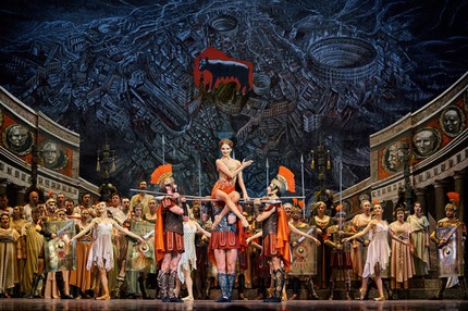Сохраняет Г. Ковтун и постулат Юрия Григоровича о «квартете исполнителей» в данном балете, введя в качестве антитезы главному женскому персонажу образ Ливии (Кристина Андреева), безответно влюблённой в Красса. Для расширения формата постановки и усиления ее смысловой концепции Ковтун вводит в балетный спектакль новшество в виде монументально-хоровых сцен. Весь состав хора театра не просто выпевал изречения античных авторов, но и сам активно участвовал в сценическом действии изображая патрициев и римских матрон. Это позволяет рассматривать всю структуру спектакля как оперу-балет – позабытый, но весьма функциональный (в плане постановочного потенциала) и вновь набирающий популярность музыкально-театральный жанр.