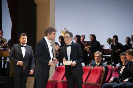 Думается, именно на этот акцент делал ставку маэстро Тилеман, когда уговаривал Георга Цеппенфельда выступить в партии главного нюрнбергского сапожника, и думается, неслучайно Ганс Закс в этой работе перестаёт быть добрым влюблённым в Еву дедушкой, каким мы привыкли его видеть. Мы видим Закса в роли режиссёра-распорядителя, готовящего представление мейстерзингеров с профессиональным тираническим мастерством: перед нами авторитарный лидер (!), мудрый, но беспощадный. Именно поэтому финальные слова об искусстве германского рейха звучат у Цеппенфельда гневным, пугающим призывом — призывом, безусловно, политическим, хотя напрямую тема беженцев и резкого сокращения воспроизводства коренного населения Германии, само собой, не прозвучала, хоть и читалась между строк.