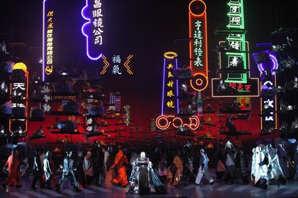 Известный как автор эффектных шоу Карлуш Падрисса со своей командой «Ла фура дельс Баус» использовал в своей версии «Турандот» Пуччини акробатов и 3D видеоинсталляции; всем зрителям раздавали 3D очки, которые нужно было надевать в специально отведённых для видеонаслаждения местах представления. Это было завораживающе и в духе восточной сказки без конца, о котором позже. Что было совсем ни в какие ворота, так это полная культурологическая каша в голове постановщика: кроме логичной «китайщины», на сцене присутствовал не только «жапонизм» (от фр. Japonisme) — танец с веерами, но и совсем уж неуместная тут «идушатина» доведийского шиваизма (многорукая Шива-Турандот).