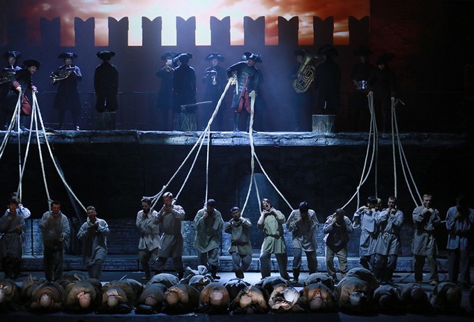 В марте 2015 года Ростовский музыкальный театр представил на Исторической сцене Большого театра оперу Шарля Гуно «Фауст». Так что открывшая нынешние гастроли «Жанна д’Арк» весьма эффектно продолжила тему зарубежного оперного романтизма XIX века. Впрочем, этот раритетный для отечественной сцены опус «раннебелькантового» периода творчества Верди в сравнении с «народным» лирическим шедевром Гуно появился на свет примерно на полтолра десятилетия раньше. Французские музыкальные страсти в «итальянской упаковке», то есть опера «Жанна д’Арк», и французские страсти в «русской упаковке», то есть балет «Эсмеральда», слились в довольно органичный, стилистически родственный, хотя и разножанровый музыкально-театральный диптих, а «Хованщина» как раз и предстала «чисто русским завершением».
