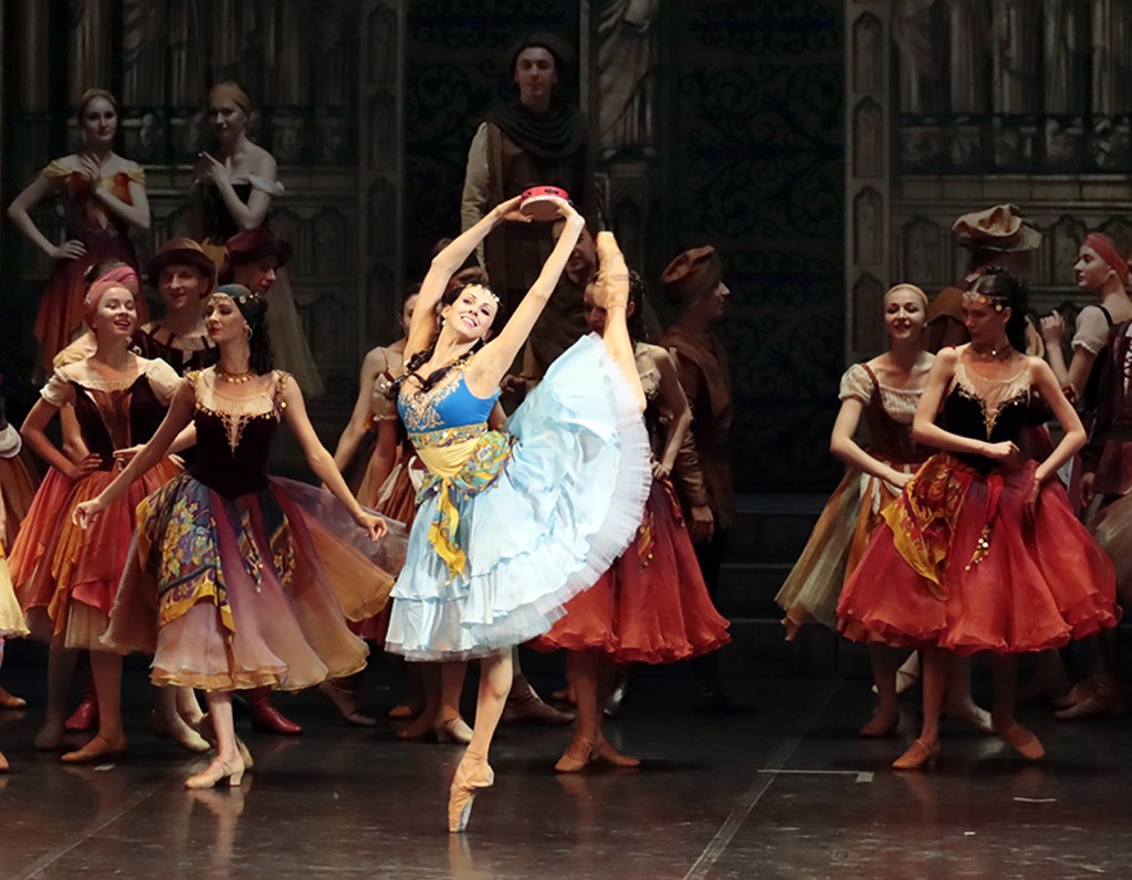 В выбранный для просмотра рецензентом день на главные партии были приглашены солисты Михайловского театра (Санкт-Петербург): многогранно яркий образ Эсмеральды технически легко и артистически глубоко воплотила изысканно тонкая и хрупкая Ирина Перрен, а в партии расфранченного кавалера Феба предстал элегантный Марат Шемуинов. Великолепный ансамбль с ними составили солисты театра Арсений Сайков (Клод Фролло), Иван Тараканов (Квазимодо), Екатерина Кунжурова (Флёр-де-Лис) и Наталья Щербина (Гудула). Массовые танцевальные сцены, харáктерные эпизоды, большие классические ансамбли, дуэты и вариации солистов, а также пантомимные «говорящие» сцены слились в этой постановке в один сплошной поток красоты и изящества, борьбы добродетели и вероломства, кипения сильных чувств и гиперболизированных романтических страстей. Полная артистическая отдача солистов, корифеев и кордебалета, прелестная музыка и роскошный флёр старинного балета, пропитанного целительным гуманизмом известного сюжета, свое дело сделали: апгрейд давних романтических впечатлений прошел успешно!