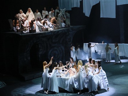 Не ища, похоже, легких путей в искусстве, дирижер выбрал наиболее востребованную сегодня и, что греха таить, модную в наше время оркестровку Дмитрия Шостаковича, и в этой партитуре боли и откровения, ужаса и правды, жизни и смерти Андрею Иванову действительно нашлось, что сказать, несмотря на то, что стандартных купюр в спектакле оказалось довольно много. В первом приближении их свод похож на тот, что был в старой доброй баратовской «Хованщине» Большого театра России, исчезнувшей из репертуара в начале 90-х годов (постановка 1950 года в оркестровке Римского-Корсакова). Но купюры в практике театрального проката – дело вполне обычное, и речь вовсе не о них, а о том, что исторический эпос как срез народной трагедии, хотя намеренных бытовизмов, кроме сцены с «банно-прачечным» балетом в тереме Хованского в этой постановке нет, больше уходит всё же в мистику, в исторический детектив, в триллер с оттенком хичкоковского саспенса, в основном, в черно-белых тонах, хотя спектакль при этом отнюдь не монохромен!..