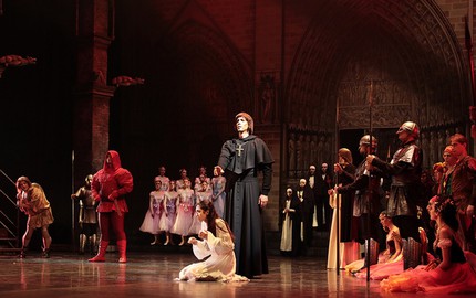 Хореографическая конструкция Бурмейстера масштабна не менее: это по-прежнему три весьма действенных акта с прологом и финальной пантомимной картиной, фактически предстающей эпилогом, в котором Квазимодо вместо того, чтобы – по Перро – заколоть Клода Фролло кинжалом, сбрасывает его с колокольни собора. И при трагической развязке, когда Феб, заколотый Фролло, умирает, а Эсмеральду, обвиненную в его смерти казнят, и при хеппи-энде, когда Феб чудесно выживает и воссоединяется со своей пассией, исход для злодея Фролло един, а исполнитель приговора – Квазимодо. Но каков бы ни был способ его исполнения, в ореоле трагедии нерв сюжетной драматургии пульсирует намного сильнее!