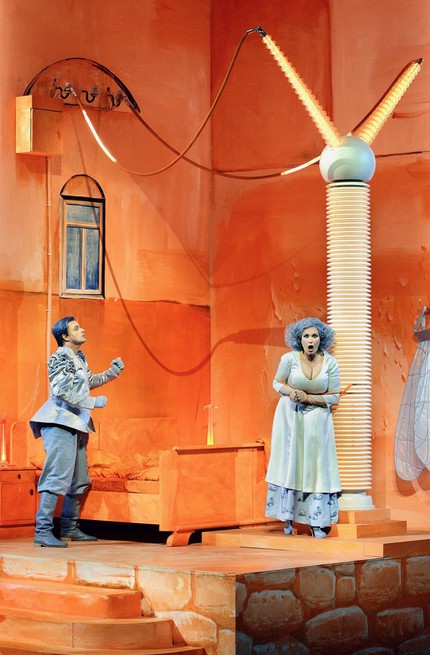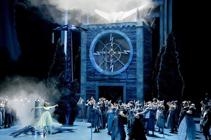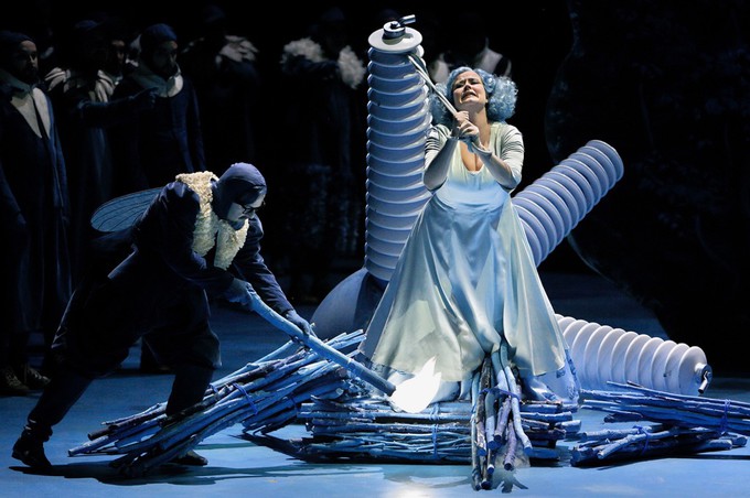 Сначала про «концепцию»: жили-были в трансформаторной будке светлячки... На всякий случай, напомню, что в предыдущей версии байройтского «Лоэнгрина» (2010) все его обитатели жили в крысиной лаборатории, то есть раньше были крысы, теперь стали светлячки — просветление, да и только. Но ощущение, будто снова побывал в дурдоме, возникло не от того, что Лоэнгрин Тельрамунду во время воздушного боя (они прямо летают над сценой, как в цирке, ей-богу!) крылышко оторвал; отнюдь.
