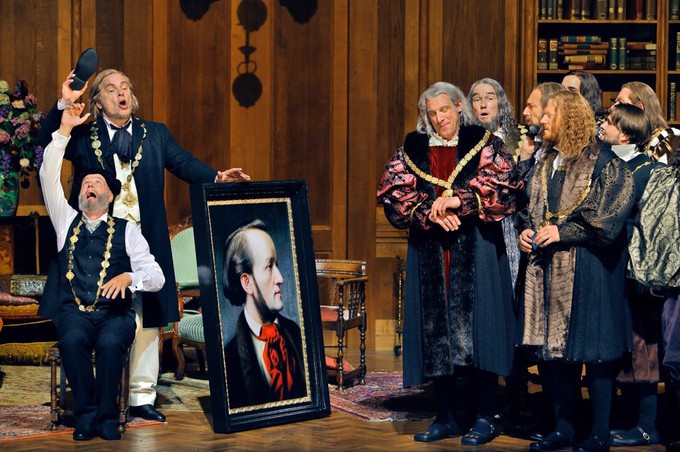Анти-антисемитский спектакль гея-еврея (или еврея-гея, там не просто у режиссёра с самоидентификацией) и по совместительству руководителя берлинской «Комише Опера» Барри Коски появился на байротских подмостках два года назад и произвёл заслуженный фурор: на сцене всё красиво (блестящая работа сценографа Ребекки Рингст), одеты все нарядно (пёстрая костюмная палитра художника Клауса Брунса — это отдельное «браво»), прекрасный свет, трюки, антисемитская концепция и сам Рихард Вагнер в главных ролях.