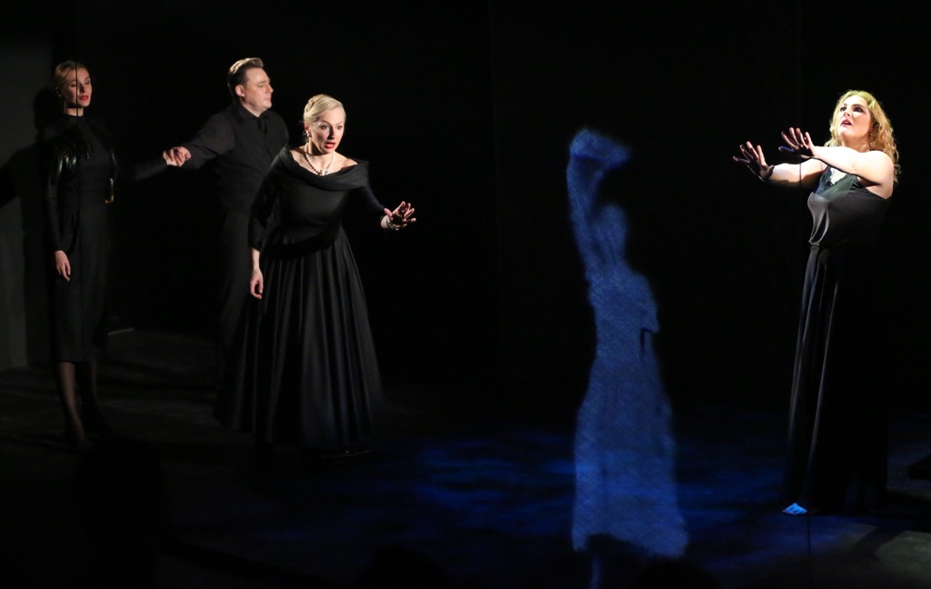 «Оригинальное» самоназвание такого режиссерского «инбридинга» на афише дается банально просто – «Телефон. Медиум». Сначала – «Телефон», затем после «генеральной паузы» – первый акт «Медиума», а на его второй акт нас приглашают уже после антракта. Есть ли хоть какие-то логически разумные основания для подобного рода режиссерского самовыражения? Да абсолютно никаких! А тот «глубокомысленный» тезис режиссера о том, что «современная публика не привыкла к новельному повествованию» – лишь частное его мнение, выстраивать на котором базис «концепции» – совершеннейший нонсенс!