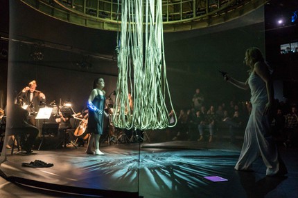 Невероятно живое, мелодически обволакивающее ощущение от музыки, особенно от «Медиума», несомненно, есть. Частные позитивные ощущения от визуальных эффектов есть тоже, но целостного ощущения театральности, особенно когда «коня» «Медиума» впрягли в одну упряжку с «трепетной ланью» «Телефона», увы, нет. С оркестром осязаемо профессионально – основательно скрупулезно и тонко – поработал дирижер-постановщик Алексей Верещагин (ассистент дирижера – Роман Денисов).