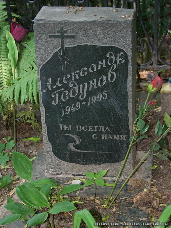 Еще один памятник Годунову стоит в Москве, на Введенском кладбище. Надпись на нем гласит: "Ты всегда с нами!" И все же думается, что образ Александра Годунова целиком остался в давно отошедшей эпохе, о которой сегодня мы можем вспоминать со странной смесью ностальгии и изумления. Совсем другие выборы, совсем другие характеры, совсем другие судьбы...
