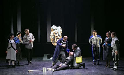 Нисколько не удивляет, что в этом спектакле есть и «самый настоящий покойник» Буозо Донати (Александр Насонов). Перед первыми тактами оркестрового вступления он еще жив и наигрывает себе на губной гармошке тему вступления, но к началу оперы уже мертв, и в этом качестве «задействован» и в спектакле: мизансценические манипуляции с его бренным гуттаперчевым телом – часть придуманной режиссерской игры. Азартом этой игры в партиях-эпизодах прониклись Александр Бобыкин (доктор Спинеллоччо) и Степан Волков (нотариус Амантио ди Николао). Кажется, нотариус – тоже мошенник, ибо его «сообщники» Пинеллино (Иван Пилюкшин) и Гуччо (Владимир Медведев), свидетели на завещании, тут же расправляются с ним в финале оперы: у каждого – своя игра…