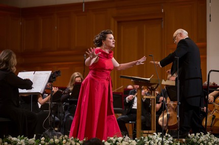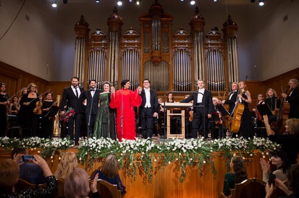 В этом концерте статус дирижера-«симфониста» заведомо принадлежал Константину Орбеляну, ибо все оркестровые фрагменты – увертюру к «Набукко» Верди, интермеццо из «Сельской чести» Масканьи, интермеццо из «Федоры» Джордано и «Танец скоморохов» из музыки Чайковского к драме Островского «Снегурочка» – провел именно он, а вокальные номера были поделены между двумя маэстро примерно поровну. В афишу вечера вошли, в основном популярные оперные фрагменты, музыка, которую знаешь едва ли не наизусть! Это было лоскутное музыкальное одеяло Верди и Пуччини, Джордано и Доницетти, Чилéа и Масканьи, Оффенбаха и Шарпантье, а также Рахманинова, Рубинштейна и Чайковского. И кто бы мог подумать, что в него будет вплетена еще и ария Герды «Когда тебя в любом краю настигнет белая зима» из детской оперы Сергея Баневича «Истории Кая и Герды»! Но сие оказалось абсолютно по теме, ведь концерт был задуман во имя спасения жизни детей.