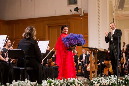 Когда благородная цель оправдывает затраченные средства, то почему бы именно так организаторам и не поступать! Так что выбор Анны Нетребко на роль именно такой звезды идеален, если сегодня не единственен. А поскольку без своего супруга Юсифа Эйвазова она практически и не выступает, то это значит, что на таком «бомонде» в качестве бонуса можно будет поглядеть и на него… Итак, главная звезда этого вечера открыла его арией Луизы «Depuis le jour» из одноименной оперы Гюстава Шарпантье. Следующую порцию «музыкального света звезды» мы получили в ансамбле с Юсифом Эйвазовым – в дуэте Адриенны и Мориса «Ma dunque è vero? Dite» из «Адриенны Лекуврер» Чилеа. А Герда и дивная баркарола Никлауса и Джульетты «Belle nuit, ô nuit d’amour» из «Сказок Гофмана» Оффенбаха, спетая в ансамбле с Екатериной Губановой, были уже во втором отделении.