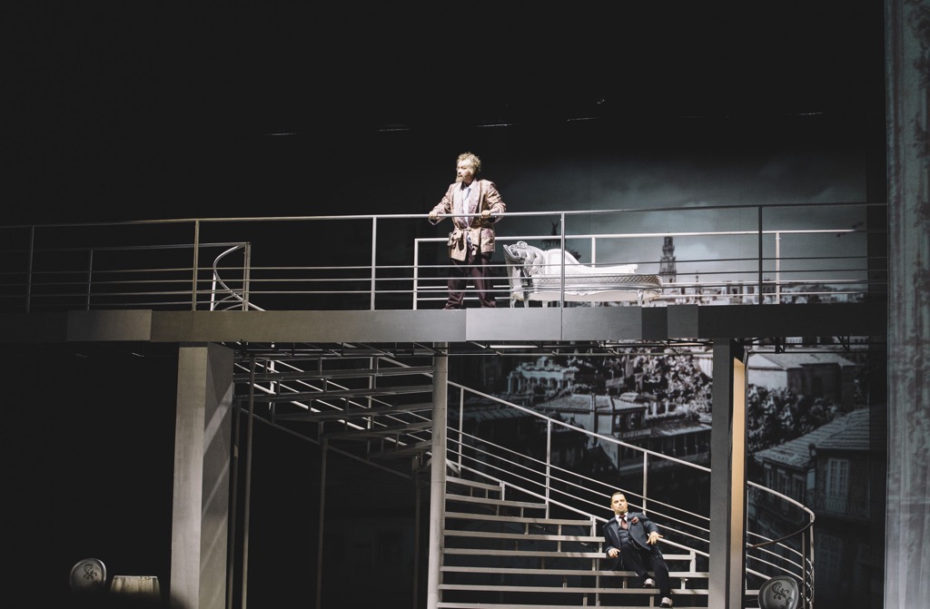 Эрнесто – молодой восторженный поклонник, влюбленный в Норину и пользующийся ее взаимностью, а Дон Паскуале – закоренелый холостяк, старомодный, прижимистый, доверчивый, упрямый и добрый в душе человек. Наконец, Малатеста – человек ловкий, веселый и предприимчивый, врач и друг Дона Паскуале, лучший друг Эрнесто. Есть и некто Нотариус, человек Малатесты, персонаж лишь для заключения фиктивного брака. Действие происходит в Риме, и герои романтической эпохи – современники композитора. А герои в постановке Ханса-Йоахима Фрая – уже наши современники, и этот сдвиг для чисто бытового сюжета, основанного на буффонаде, проходит абсолютно безболезненно.