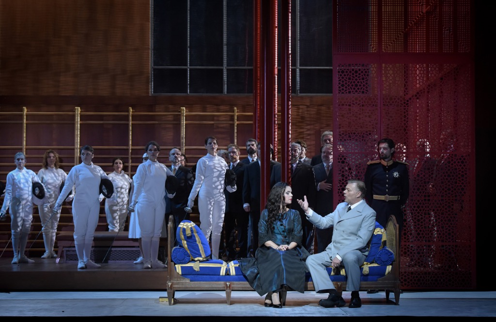 Находившегося за дирижерским пультом в 2017 году швейцарца Филиппа Жордана, нынешнего музыкального руководителя Парижской национальной оперы, для которого сезон 2019/2020 на этом посту – последний (маэстро собирается занять такой же пост в Венской государственной опере), на итальянской реинкарнации французской продукции сменил итальянец Фабио Луизи, маэстро вполне «номенклатурный» и профессиональный, но вряд ли отличающий какой-то особой харизматичностью и темпераментностью. И на этот раз та же самая – но по своему эмоциональному настрою, в сущности, совсем ведь другая музыка! – прозвучала как-то формально, несколько даже поверхностно, схематично, без вторжения в ее сакральные драматические глубины, которые именно в итальянской редакции должны были бы проступить наиболее отчетливо и психологически сильно. Впрочем, «глубинных» претензий к маэстро и не было, но и ярких восторгов – тоже. Вряд ли что-то кардинально смог бы изменить и Филипп Жордан, встань он за дирижерский пульт снова: даже «заочные» киновпечатления убедили в том, что менее экспрессивная, но более лиричная и «спокойная» французская версия стала его музыкальным коньком!