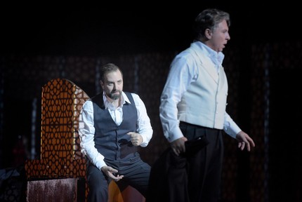 Так что переводная пятиактная версия «Дона Карлоса» – причем, не потеряв по дороге и балетный дивертисмент, – добралась до Италии уже на следующий год после премьеры 1867 года в Париже. А мы, наконец, добрались до исполнителей нынешнего парижского возобновления итальянской редакции 1886 года, правда – без балета. То, что его нет на сей раз, совершенно логично, а то, что в постановке Кшиштофа Варликовского его не было два сезона назад – обычная техническая купюра, которая в громоздкой и без того постановке просто сняла множество дополнительных проблем, которые надо было бы решать. К тому же, сегодня выброс балета из оперы – дело обычное, «криминалом» вовсе не являющееся…