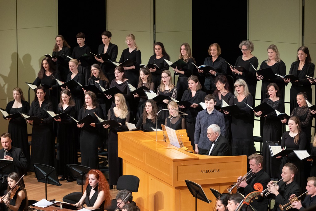 В «Магнификате» Бах-отец использует пятиголосный хор, что весьма необычно, а Бах-сын – четырехголосный. В первом случае предполагаются пять голосов солистов (два сопрано, альт, тенор и бас), а во втором – четыре (сопрано здесь одно). Но в обоих случаях в этот раз на концерте было всего четыре сольных голоса: сопрано – Каталина Бертуччи (Чили – Италия), альт (меццо-сопрано) – Юлия Бёме (Германия), тенор – Михаэль Фейфар (Швейцария), бас-баритон – Маттиас Винклер (Германия). Так что в «Магнификате» Баха-отца десятая часть «Suscepit Israel» (трио для двух сопрано и альта) на сей раз прозвучала в «хоровой транскрипции» женских голосов. В своих «Магнификатах» отец и сын прибегли к абсолютно характéрному для той эпохи составу оркестра, хотя от первой до финальной редакции он и менялся. И если Бах-отец решал музыкальные задачи всё же в ренессансно-барочной эстетике, то Бах-сын при заведомо генеральной преемственности стиля своего отца – в барочно-классицистском преломлении, словно подготавливавшем почву для этого жанра в творчестве Гайдна и Моцарта. С Камерным оркестром России партию органа в необычайно этом увлекательном московском проекте исполнил Александр Фисейский.