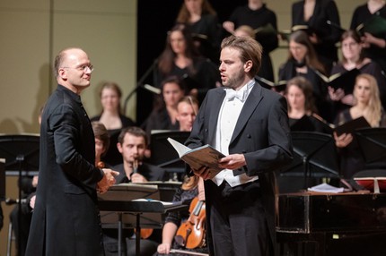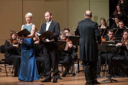 В то же время у К. Ф. Э. Баха в части «Fecit potentiam», «превращающей» хор у отца в арию баса, и в части «Deposuit potentes», «превращающей» арию тенора у отца в дуэт альта и тенора, прослеживается и довольно причудливое «цитирование в развитии». Но как же мастеровито всё сделано! Так что свою лепту в общий восторг этого удивительного вечера вносят также и яркие сравнительные впечатления. Что же до впечатлений музыкальных, то на первом месте – изумительный оркестр, совершенно роскошный хор, пленивший своей интонационной рафинированностью и чувственной филигранностью, а также дирижерская интерпретация. Голоса «квартета» солистов предстали небольшими, весьма скромными по фактуре, «эмиссионно-точечными», но явившими идеальную стилистическую выучку. Так что впечатлили не столько сами эти голоса, сколько культура их пения и ансамблевость…