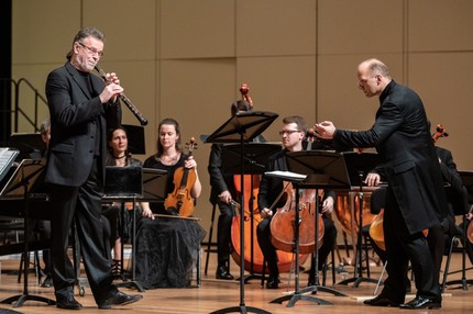 Итак, два отделения концертной программы – два «Магнификата», но помимо них в первом отделении прозвучала известная и популярная Сюита № 3 для оркестра ре мажор И. С. Баха (BWV 1068), а во втором – Концерт для гобоя с оркестром до минор, который явился переложением Концерта для флейты с оркестром ре минор К. Ф. Э. Баха (H 426). Партию гобоя в нём исполнил Алексей Уткин, а дирижером всей программы как раз и стал Хансйорг Альбрехт. Он является не только художественным руководителем Мюнхенского Баховского хора, но и Мюнхенского Баховского оркестра, сочетая в своей музыкальной деятельности также практику клавесиниста и органиста. Этот дирижер, в чём можно было убедиться на концерте в Москве, оказался чутким, педантично-рафинированным носителем исполнительских традиций старинной немецкой музыки, и его выступление с Камерным оркестром России стало образцом всецело завораживающего творческого альянса.