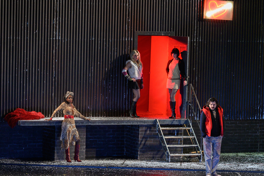 Третье действие протекает рядом с серым, как склад, борделем, в котором Марсель расписывает стены, Мюзетта выступает, а Рудольф набирается впечатлений для создания бессмертных литературных произведений. Мороз и снежок на улице акцентируют неоновую пустоту и отчуждение, присущие секс-индустрии.