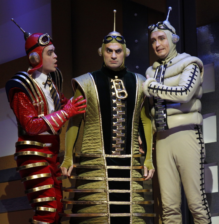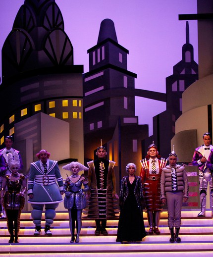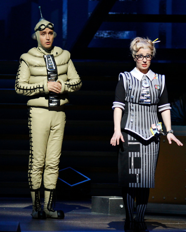 Хотя постановщики уверяют, что не работали против музыки, диссонас начинает ощущаться уже во время увертюры. На занавесе изображены космонавт и девушка в летающей машине, и мелодии Россини совершенно не несут оживляющей картинку энергии.