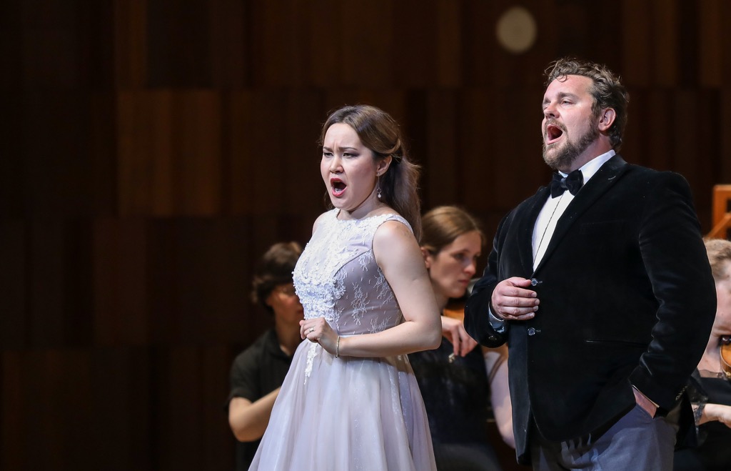 Очень «странно» поэтому во втором отделении концерта «Влюбленные» прозвучала ария Дона Рамиро «Sì, ritrovarla io guiro» из оперы Россини «Золушка» (1817). В принципе, прозвучала добротно, но «странно» потому, что звуковедение исполнителя было довольно тяжелым, малоподвижным, без тонкого романтического драйва, едва не зашкаливавшим на верхней границе диапазона арии. И если в «Деве озера» Майкл Спайрес в облике брутального Родриго вступал и по сюжету, и по музыке в восхитительно стильное соревнование с харизматичным аристократом Хуаном Диего Флоресом в партии Уберто-Джакомо, то в арии Дона Рамиро, грубо говоря, как раз Флореса ощутимо недоставало. Возможно, это и есть причина, по которой на концерте в Москве петь каватину Уберто-Джакомо «O fiamma soave» Майкл Спайрес не стал: в предварительной программе на сайте «Зарядья» этот номер заявлен был, но в финальной печатной версии незаметно исчез. И в этом есть резон, ведь теперь певец собирается предстать перед нами в партии Родриго…