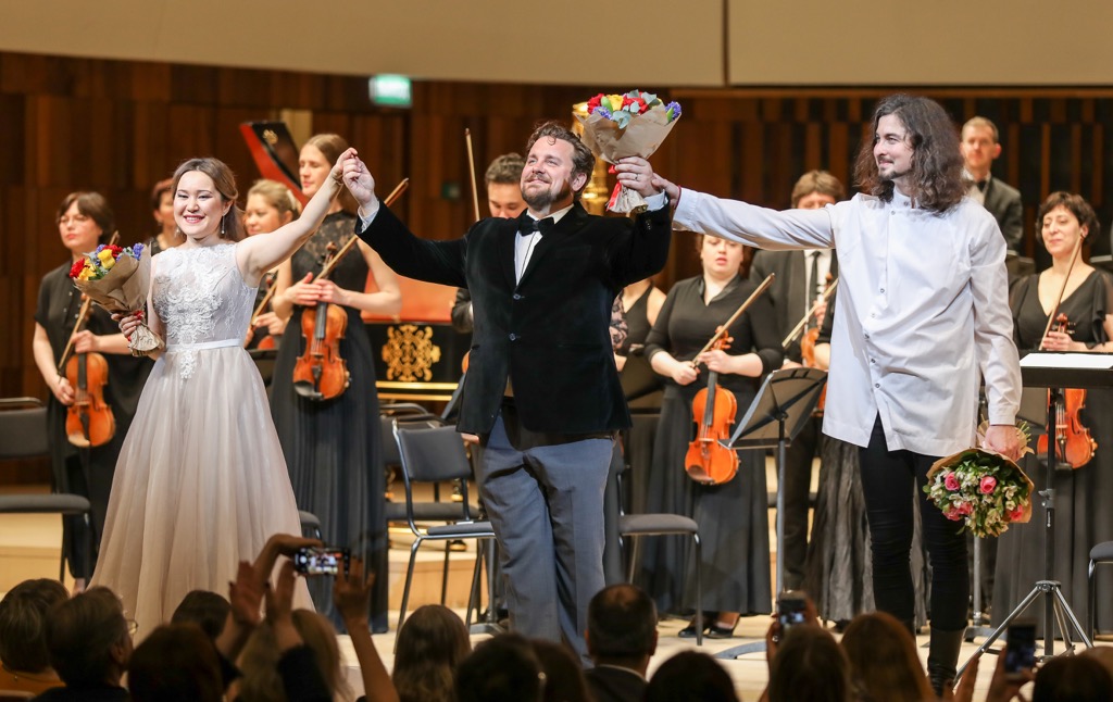 Оркестрово-инструментальная сфера программы была представлена увертюрами к операм Моцарта «Идоменей, царь Крита» и «Митридат, царь Понта», а из «Идоменея» также прозвучали три танца (1781, K. 367). Кроме этого мы услышали увертюры к операм Россини «Золушка» и «Синьор Брускино» (1813), а также интермеццо из оперы Масканьи «Сельская честь» (1890). Оркестр «Musica Viva», в звучание которого новый дирижер смог внести новые эмоциональные краски, как всегда был на высоте профессионализма и музыкальности, и именно с этим оркестром анонсирован осенний проект «Дева озера»…