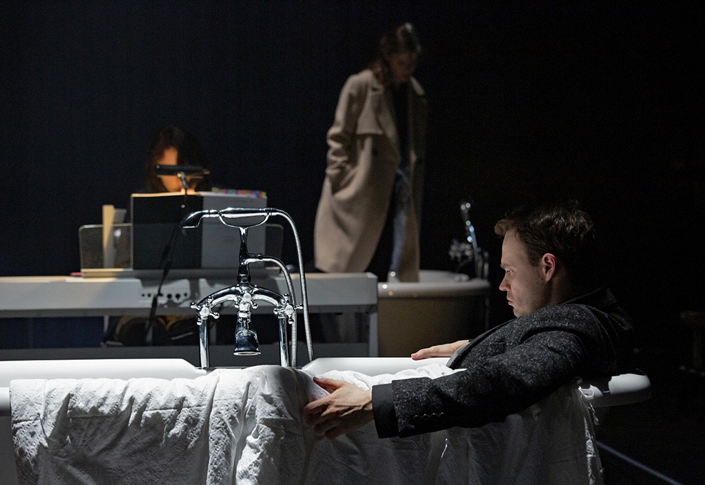 Декорации Ксении Перетрухиной минималистичны и точны. Два цвета – черный и белый, как в старом кино. Три кровати, три ванны, три фортепиано – редупликация простых структур, комната-метаморф, которая меняется, но остается той же самой. Лиз (Мария Деева), Поль (Андрей Юрковский), Агата (Мария Юрковская) и Жерар (Максим Дорофеев) переходят из дома на улицу, в модный салон, в особняк жениха Лиз – но при этом никогда не покидают замкнутого мира детской.