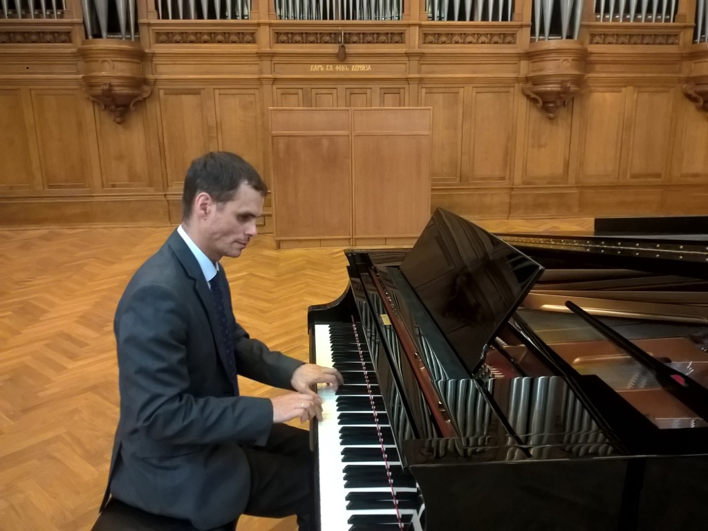 Николай Овчинников на репетиции в Большом зале консерватории