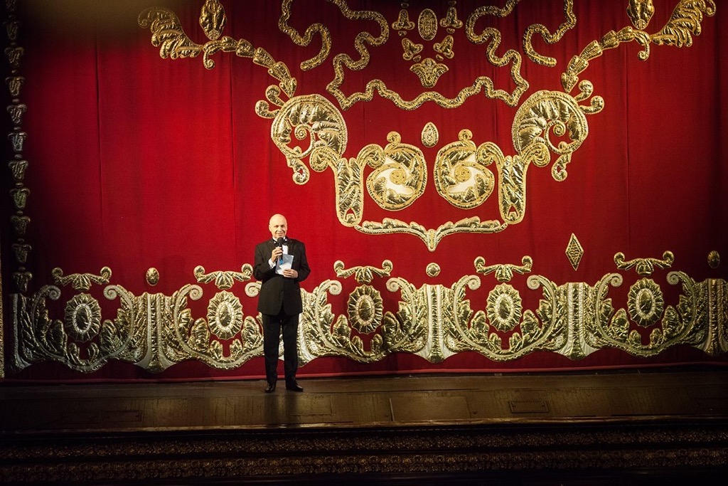 Борис Блох на фоне знаменитого Головинского занавеса Одесской оперы. Фото Юрия Литвиненко