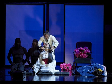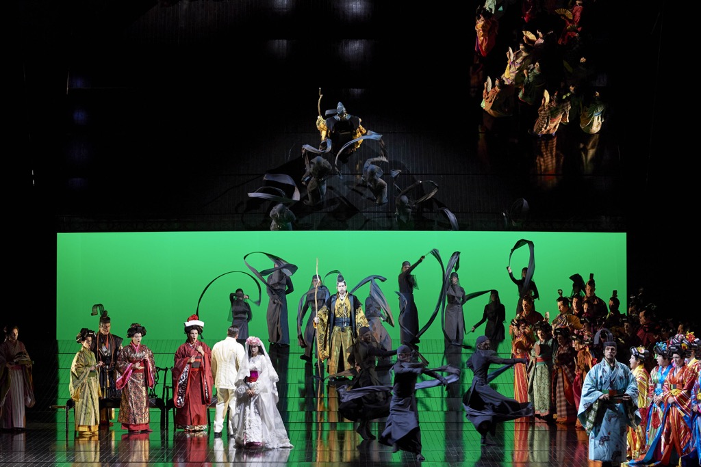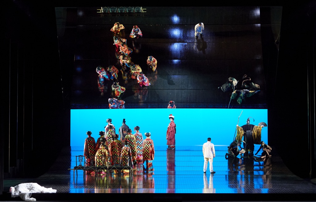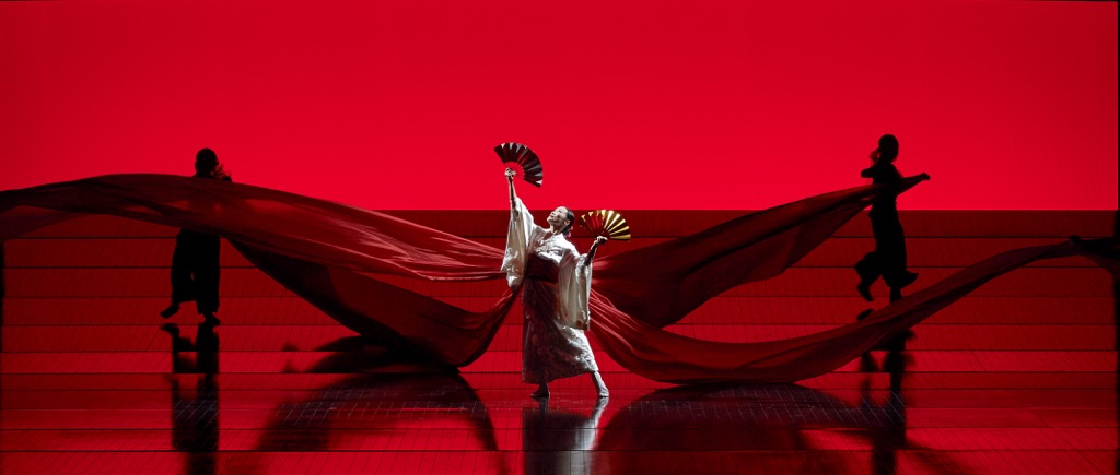 Спектакль «оскароносного» режиссёра Энтони Мингеллы («Английский пациент», «Талантливый мистер Рипли», «Чтец») впервые был показан на сцене Английской национальной оперы в 2005 г., в 2006 перенесён на сцену Литовского национального театра оперы и балета и в «Метрополитен Оперу». Перенос легендарной постановки в Вену осуществила Каролин Чоа. Яркая костюмная палитра спектакля (Хан Фенг) в сочетании с его сценографической и пластической сдержанностью (оформление сцены — Майкл Ливайн, хореография — Каролин Чоа) идеально вписалась в строгий интерьер Венской оперы, а камерная интимность сюжета заиграла свежими смысловыми оттенками.