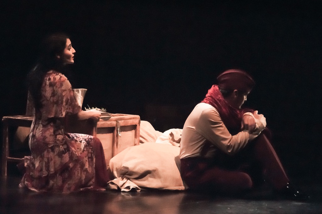 В слова «показана на сцене» на этот раз вложен особый смысл, ведь на сцене Большого зала Театра имени Н.И. Сац находились все! И камерный оркестр довольно специфичного для оперы состава. И нехитрый, однако поразительно емкий сценографический антураж, в котором действо разворачивалось непосредственно перед зрителями. И пять рядов мест на возвышении, с которого зрители могли наблюдать за развитием этого действа, практически погрузившись в него с головой. Для размещения всего этого от сцены Большого зала было отгорожено требуемое камерное пространство, и в нём, благодаря художнику-сценографу Светлане Чазовой и художнику по костюмам Екатерине Чазовой (обе они – из Великого Новгорода), находиться было настолько уютно, настолько легко и комфортно, что после полутора часов одноактного спектакля покидать это пространство совсем не хотелось…