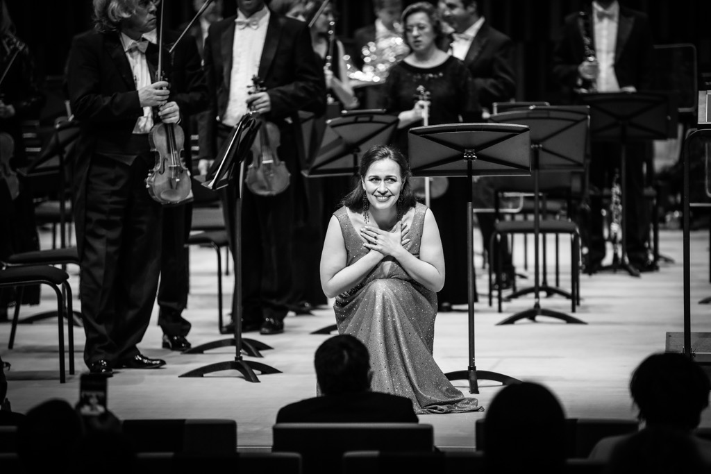 В приложении к ней находим партию Ярославны в «Князе Игоре» Бородина, спетую в Парижской национальной опере (на сцене Оперы Бастилии), партию Мими в «Богеме» Пуччини, спетую в Мариинском театре и на той же сáмой сцене в Париже, партию Мадам Баттерфляй в одноименной опере Пуччини, спетую в Амстердаме, и, наконец, партию Аиды в одноименной опере Верди, спетую в Женеве. Что и говорить: обойма ангажементов впечатляет! И поскольку Елена Стихина – певица, прежде всего, оперная, то знакомство с ней именно в этом качестве в рамках концертной программы на церемонии награждения премией CASTA DIVA перед концертом в «Зарядье» оказалось весьма кстати.
