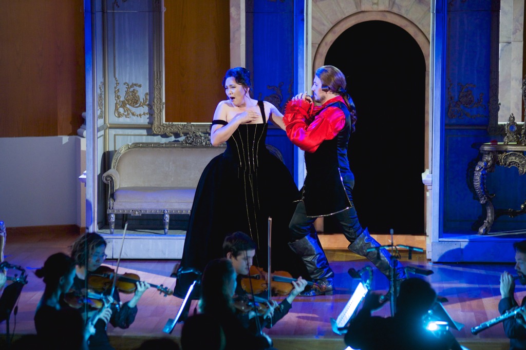 Новой постановке Казахского театра оперы и балета имени Абая при всей ее вольной иллюстративности и явной претензии на современное режиссерское прочтение, в целом, доверяешься как зритель необычайно легко. Возможно, и не во всём ее принимаешь, но не содрогаешься, а с неослабевающим интересом внимаешь ей на всём протяжении спектакля. И так происходит потому, что всё в нём вполне логично и укладывается в канву сюжетно-музыкальной эстетики. Спектакль внимателен – и даже чуток! – к романтической эпохе оперного повествования, о чём хорошо позаботилась интернациональная постановочная команда. В нее вошли режиссер Ирина Лычагина (Россия), сценограф и художник по костюмам Карина Автандилова (Россия), художник по свету Кевин Вин-Джонс (Швеция) и видеохудожник Инета Сипунова (Латвия). Но романтически насыщенная аура лирических оперных сцен не была бы таковой без дружественного и не менее чуткого по отношению к этой музыке прочтения, стилистической точностью и энергетикой которого убедил, можно сказать, даже поразил молодой талантливый маэстро Канат Омаров, нынешний главный дирижер этого театра (хормейстером постановки выступила Алия Темирбекова).