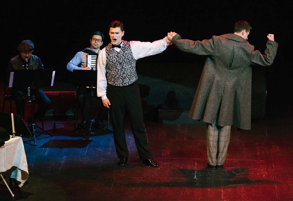 Кабаре – это всегда плакатная яркость и контрасты, смелая гипертрофированность «чувственного томления» и страсти. Это всегда взрыв эмоций на грани фола, бросающего дерзкий вызов обывательской чопорности и респектабельности, но в случае Вайля это еще и мощное остросоциальное высказывание. Таковым, конечно же, предстает и завершающая постановку суперзнаменитая «Песнь Алабамы» («Alabama Song», 1927) на слова Бертольда Брехта в английском переводе Элизабет Гауптман. Она – неизменный хит проекта во всех трех его версиях, и на сей раз прозвучала в исполнении всего актерского трио. Из двух других номеров на слова Брехта пронзительно-трагическая антивоенная баллада «И что получила солдатская жена?» («Und was bekam des Soldaten Weib?», 1942), представленная Александрой Дурсеневой, из проекта также никогда не выпадала, а разудалая и забористая «Песня пушек» («Kanonensong») в исполнении Василия Ефимова, которая взята из пьесы с музыкой «Трехгрошовая опера» («Die Dreigroschenoper», 1928), звучит в проекте второй раз. Эту песню в канве ее сюжета должны исполнять два персонажа (главный герой Макхит по кличке Мэкки-Нож и его старый друг, шеф лондонской полиции Джеки Браун по прозвищу Тигр), а в финале должен еще вступать и «хор», но традиция концертного сольного исполнения сложилась давно, поэтому и на сей раз это нисколько не смущает.