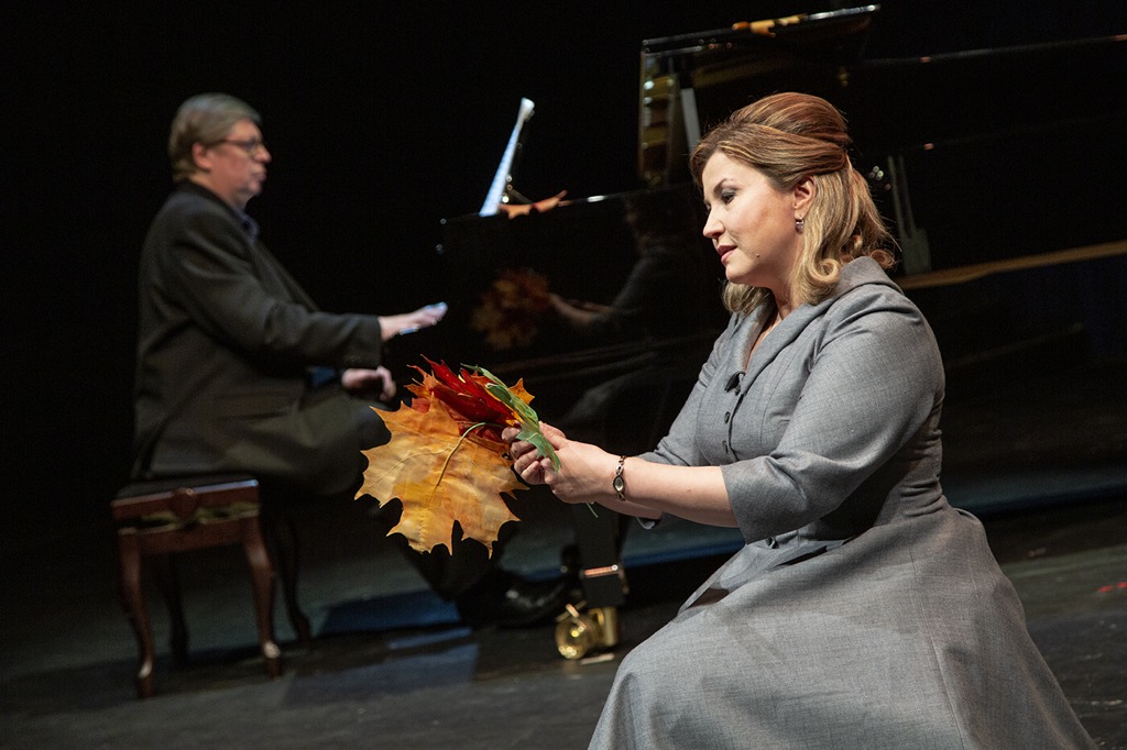 Несомненно, мы имеем дело с авторским проектом двух единомышленников: сопрано Эльвина Муллина и пианист Александр Онькин в их взаимодополняющем музыкальном взаимодействии предстают командой абсолютно самодостаточной. А если вспомнить, что представление было сыграно на гостевой площадке, возможно, даже с привлечением местного театрального «реквизита» (неужели скамейку привезли из Петрозаводска?!), то в условиях определенной импровизации героине пришлось взять на себя и роль режиссера, и роль художника, с чем она справилась профессионально и убедительно!