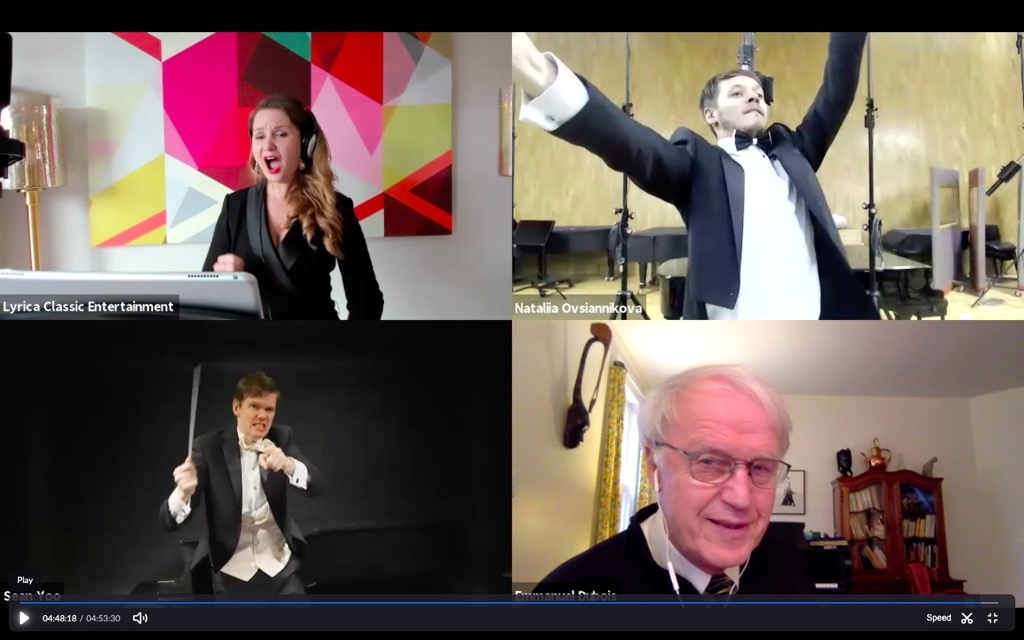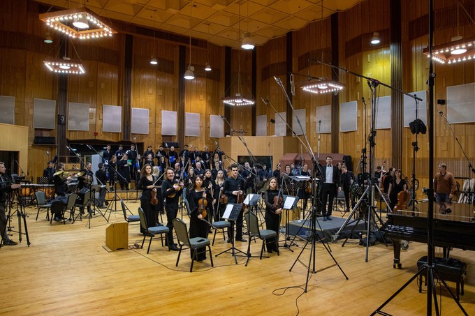 Запись проходила одновременно в трёх студиях трёх городов: в Москве на «Тонстудии» Мосфильма, Вашингтоне и Нью-Йорке. Записывали «вживую», без монтажа. И хотя использовали все доступные виды связи, синхронизировать процесс было не просто. Композитор по zoom присутствовал на репетициях и записи.