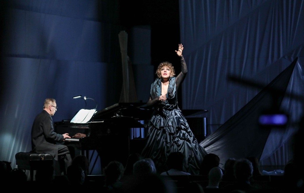 В условиях камерного зала оба вокально-симфонических произведения прозвучали в сопровождении фортепиано, партию которого изумительно масштабно — психологически глубоко и эмоционально рельефно — провел Владимир Слободян: этот исполнитель своим мастерством едва ли не заменил целый оркестр! В «Песне о земле» фортепиано задумчиво дополнялось арфой: ее партию взяла на себя Татьяна Осколкова. «Малеровская симфония» всего проекта оказалась в профессионально надежных руках, а мощное, проникновенно чувственное звучание голоса его музы Александры Дурсеневой, словно идущее из высей космоса и глубин самóй земли, предстало академически стильным, ароматно терпким, завораживающим, точно выдержанным в педантичных традициях «стального» немецкого романтизма. И на финальном этапе под его эпохой просто гениально подвел черту Малер!