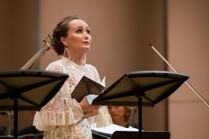 Вокальный феномен Юлии Лежневой в полной мере проявился и в этой ее работе. В двух медленных ариях «Io sperai di veder il tuo volto» («Партенопа») и «Piango dolente il sposo» («Ричард I») она продемонстрировала прелестное изящество кантилены, заворожив в обеих пьесах филигранно утонченными развернутыми каденциями: от их интонационной чистоты и наполненности светлой печалью просто перехватывало дыхание! Из двух спетых арий di bravura наиболее блистательной предстала ария в финале первого акта «Dite pace e fulminate» («Созарм»): удивительная голосовая подвижность взяла в плен и на сей раз. Вокальный посыл певицы заметно укрупнился, но своей чувственности не растерял: при этом музыкально-драматическая аффектация исполнительницы стала ярче, рельефнее.