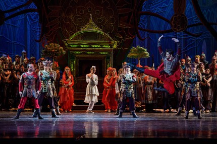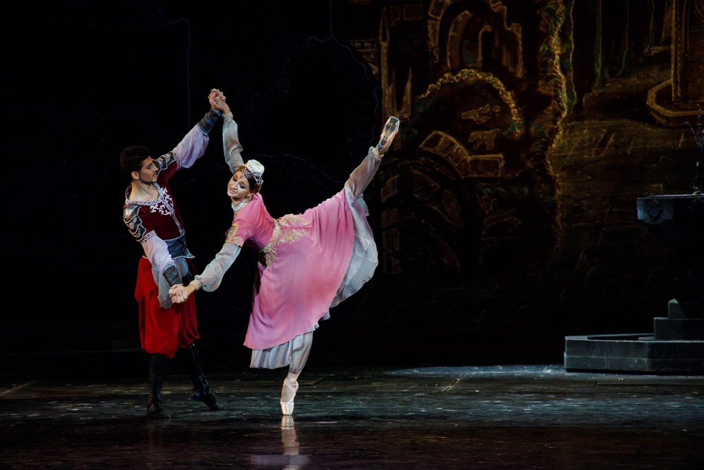 Нынешний фестиваль подарил необычайно сильный состав исполнителей. В «септете» главных классических персонажей Джанике – единственная женская роль, и ее чувственно и нежно, грациозно и царственно благородно, согласно статусу ханской дочери, провела Кристина Андреева. И всё же хореографический конек этого балета – сольный мужской танец: на нём хореограф делает главный упор. В партии Нурадина артистически вальяжен, романтически порывист и технически безупречен Олег Ивенко, и его неистово мощный танец – само олицетворение мужественности и куртуазности. Под стать ему – Артем Белов: в партии Мурзы он приковывает воинственной суровостью, но энергичная пластика линий его героя мягка, движения легки, а психологический срез образа чувственно тонок. В тройку лидеров-мужчин входит также Алессандро Каггеджи: в коварную сущность партии Визиря он проник до самого ее дна, так что в каждом своем выходе, в каждом своем па выплескивал в зрительный зал неиссякаемый вихрь злодейства, нарочитой взвинченности и рельефности движений, отточенного технического мастерства и подлинного артистизма.