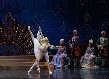 Изменен и ряд мизансцен, а два танца героев волшебных сказок на свадьбе Авроры – Кота и Кошечки, Серого волка и Красной шапочки – под стиль Петипа восхитительно поставлены заново. В антре и коде финала выходят также Золушка и Принц Фортюне, но отдельного номера у них нет. С вариациями, как и положено, в прологе появляется пятерка Добрых фей, а на свадьбе Авроры – четверка Фей драгоценностей. Конечно же, на своем законном месте – классическое па-де-де Принцессы Флорины и Голубой птицы. Одним словом, на премьере новая редакция предстала во всём ее великолепии и блеске! В партии Авроры царственная Кристина Андреева предъявила и балеринскую стать, и точеную красоту линий, и стальной апломб, и феноменальную технику, но вместе с тем захватила и одухотворенной нежностью, и подлинным артистизмом. На контрасте с высоко поднятой ею планкой исполнения партии выступление во второй день Марии Кочетковой (уроженки России, развивающей свою карьеру, в основном, за рубежом) стало едва ли не досадным курьезом! В ее манере сквозило лишь одно «прилежное ученичество» – и ничего более…