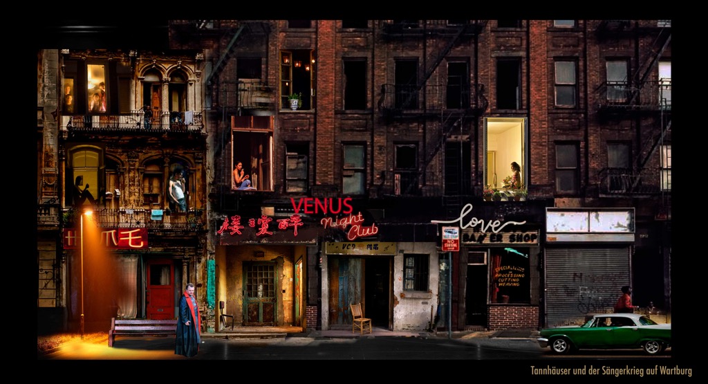Главный герой оперы — раздираемый противоречиями рыцарь-поэт Тангейзер. Любовно-философский треугольник с ним образуют фигуры языческой богини Венеры и христианской праведницы Елизаветы. Конфликт земного и небесного дан уже в увертюре, и далее он разворачивается в трех актах оперы. С одной стороны — торжественная мощь хоральных напевов, с другой — томительная, жаркая хроматика, передающая чувственное влечение. Сталкивая сиюминутное и вечное, грех и добродетель, Вагнер использует универсальный язык мифа, и поэтому его сюжеты так легко откликаются на актуализацию, на перенос в реалии сегодняшнего дня.