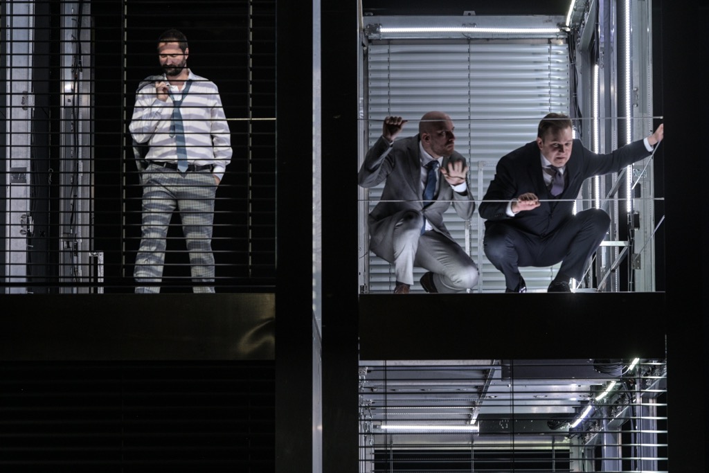 Недоумение вызывала издевательская работа по свету Йоахима Кляйна. Лица были либо засвечены резким белым светом, либо находились в тени. Металлическая клетка, вращаясь, била в глаза ярко-жёлтыми отблесками. Кляйн не тратил силы на размышления о том, как представить персонажей в определённом свете или передавать светом смыслы. Поэтому основная зрительская задача состояла в том, чтобы хоть как-то разглядеть артистов на сцене сквозь световую преграду.