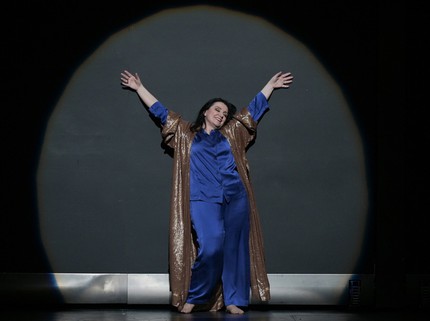 К сожалению, постановщики будто бы задались целью отделить артистку от зрителей: то при помощи непроницаемого для взгляда света, то при помощи решётки, за которой Поппея металась на втором ярусе клетки, негодуя после наветов Агриппины.