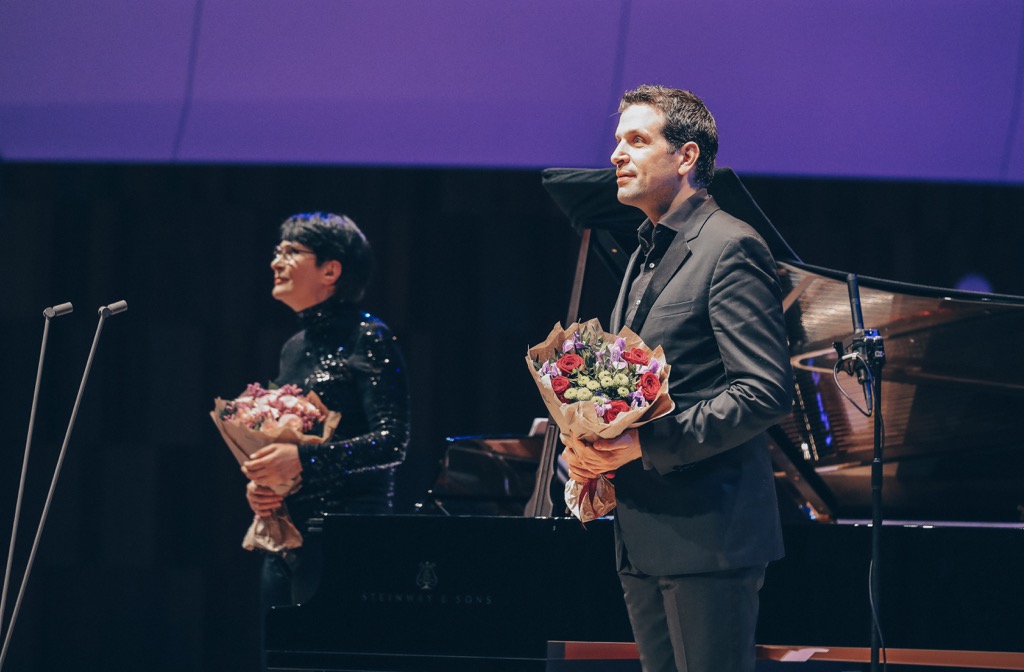 Опусы Донауди прозвучали совсем не интересно, а после «распевания» исполнителя на первой канцоне Тости, в двух оставшихся он смог, наконец, показать и определенную ровность, и чувственность фактуры, и даже в некоторой мере музыкальную «вкусность». Наиболее выигрышно исполненные пьесы обычно звучат в теноровой интерпретации, если, конечно, тенор – мастер, знающий в этой музыке толк. Но ведь и баритоны также могут исполнять эту музыку весьма интересно! Возможно, на этот раз загвоздка случилась в бас-баритональной переходности вокальной фактуры певца. А если это так, то обращение к подобному репертуару вызывает недоумение…